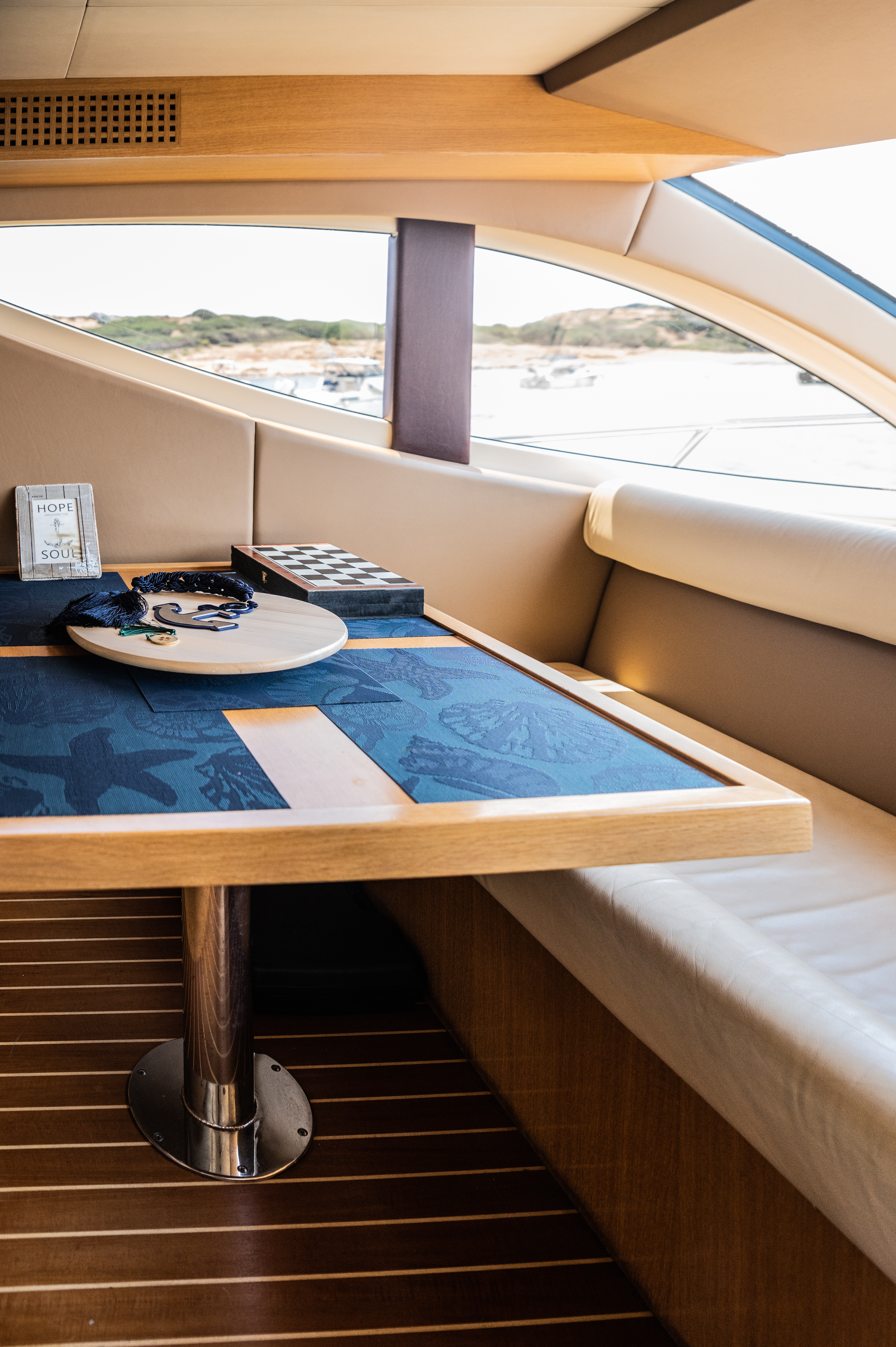 Every space, from the salon to the flybridge, is equipped to support relaxation,